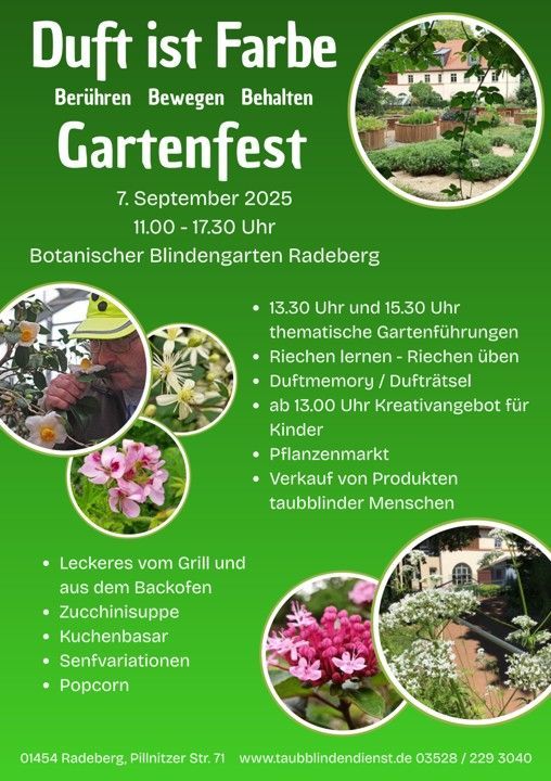 Seit vielen Jahren unterstützen wir die Arbeit mit taubblinden Menschen, auch dieses Jahr wollen wir wieder gemeinsam das Gartenfest in Radeberg feiern. Beginn ist 11.00 Uhr am Sonntag, den 07. September 2025.