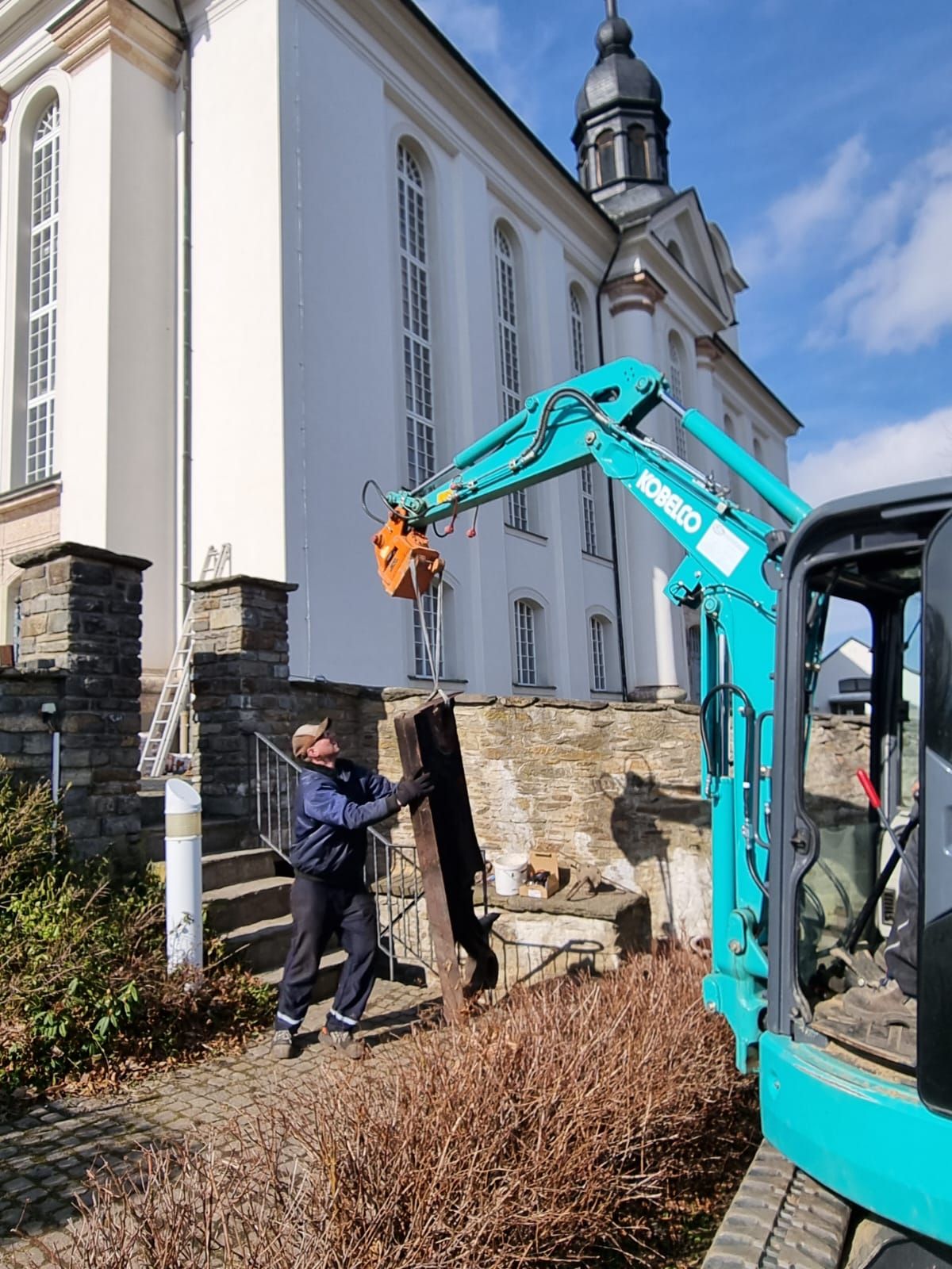 Letzten Samstag wurden die Kronleuchter in der Kirche abgenommen und eingelagert. Danke an alle Helfer dafür! Nach Ostern soll dann die Kirche soweit vorbereitet werden, dass das Innengerüst gestellt werden kann.