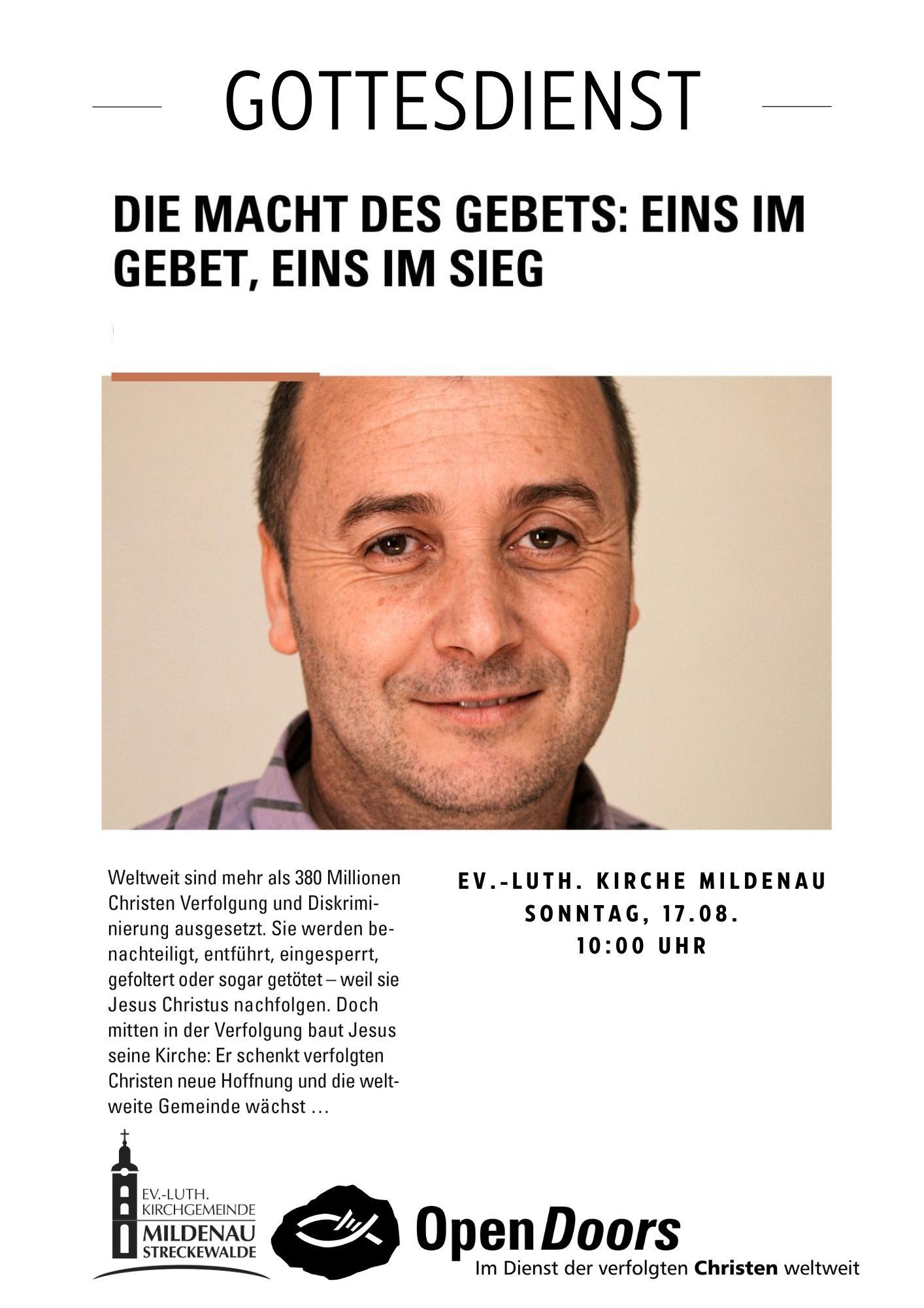 Er findet jeden Sonntag, 10:00 Uhr statt. Für die Kinder gibt es parallel dazu einen altersgerechten Kindergottesdienst.