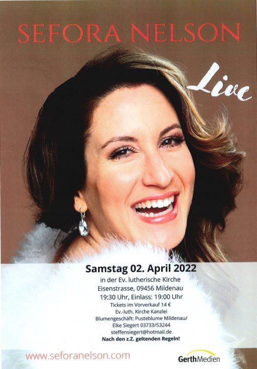 Sefora Nelson live am 02. April 2022 in der ev.luth. Kirche Mildenau, Eisenstraße 113